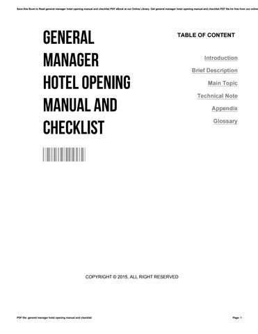 YLR - Download online General Manager Hotel Opening Manual And Checklist Hardcover BookBoon